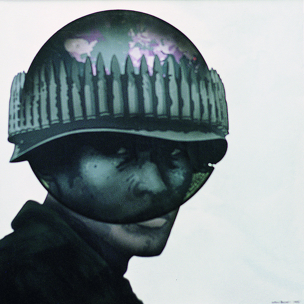 Lo general y lo particular comparten protagonismo en esta obra. El retrato de un soldado, como muestra del sufrimiento individual, se combina con la representación de un mundo asediado por la guerra. La superposición se efectúa recurriendo a un régimen de transparencias. La veladura que se aplica sobre el casco incorpora un contenido geográfico que, sin embargo, desaparece en la parte del globo que oculta la cara.