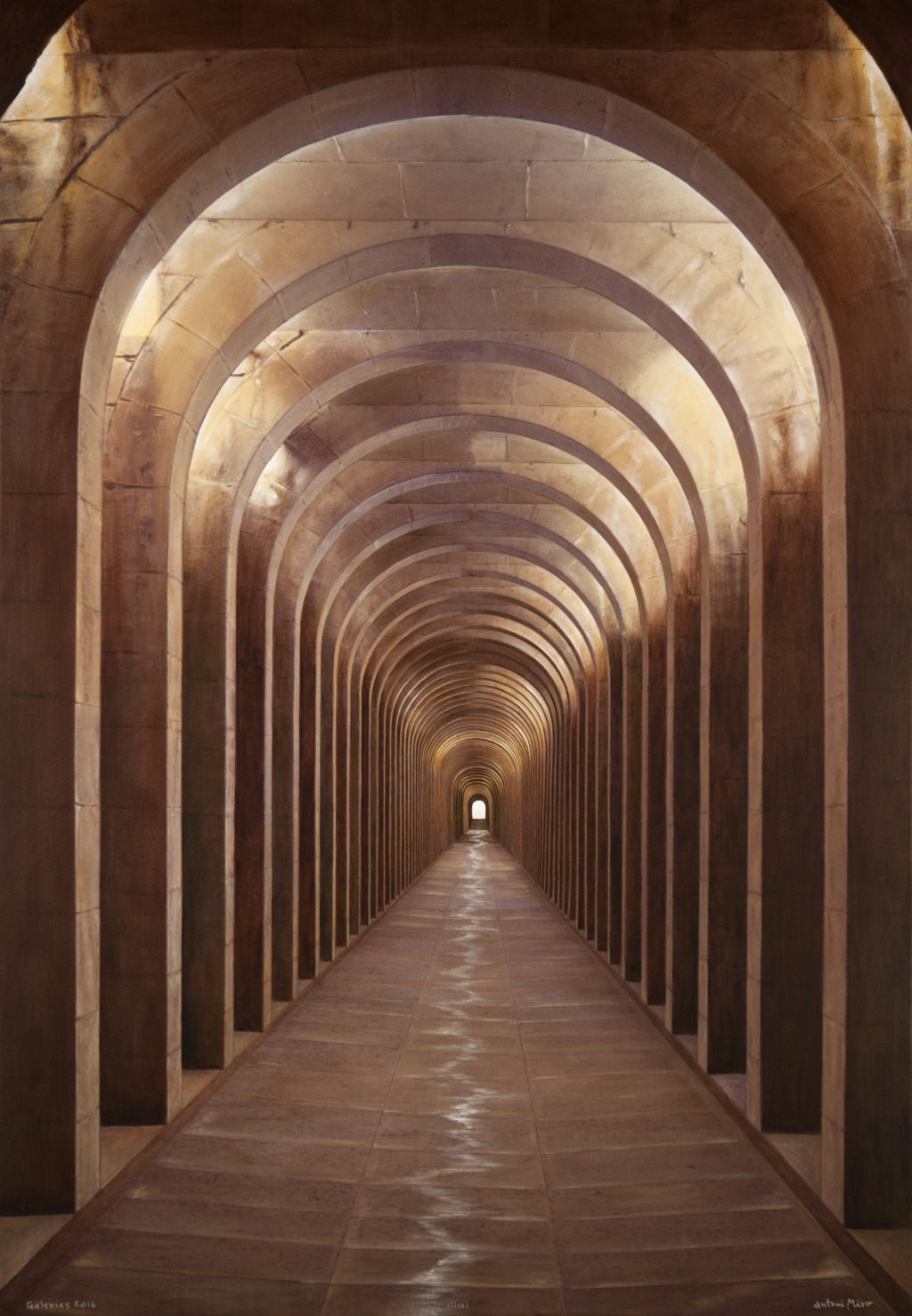 Esta obra se enmarca en la serie “Costeres i Ponts” y consiste en la representación de una de las galerías existentes en el cementerio de Sant Antoni Abat, en Alcoi, cuyo origen data de finales del siglo XIX, en una fase de mucho crecimiento demográfico. De acuerdo con los criterios higienistas en boga en la época, con los que se pretendía paliar el alto grado de insalubridad que sufría la ciudadanía, especialmente sus clases más bajas como el proletariado residente en las ciudades industriales, esta infraestructura fue emplazada en las afueras de la ciudad, en un área elevada, soleada y expuesta a los vientos dominantes. Dado que ocupa una extensión considerable, y con la pragmática finalidad de ejecutar una gran plataforma nivelada, el proyectista, el ingeniero Enrique Vilaplana Juliá, tuvo que recurrir a la ejecución de unas estructuras de contención de tierras de cierta entidad, sirviendo estas arquerías de contrafuertes de las mismas.