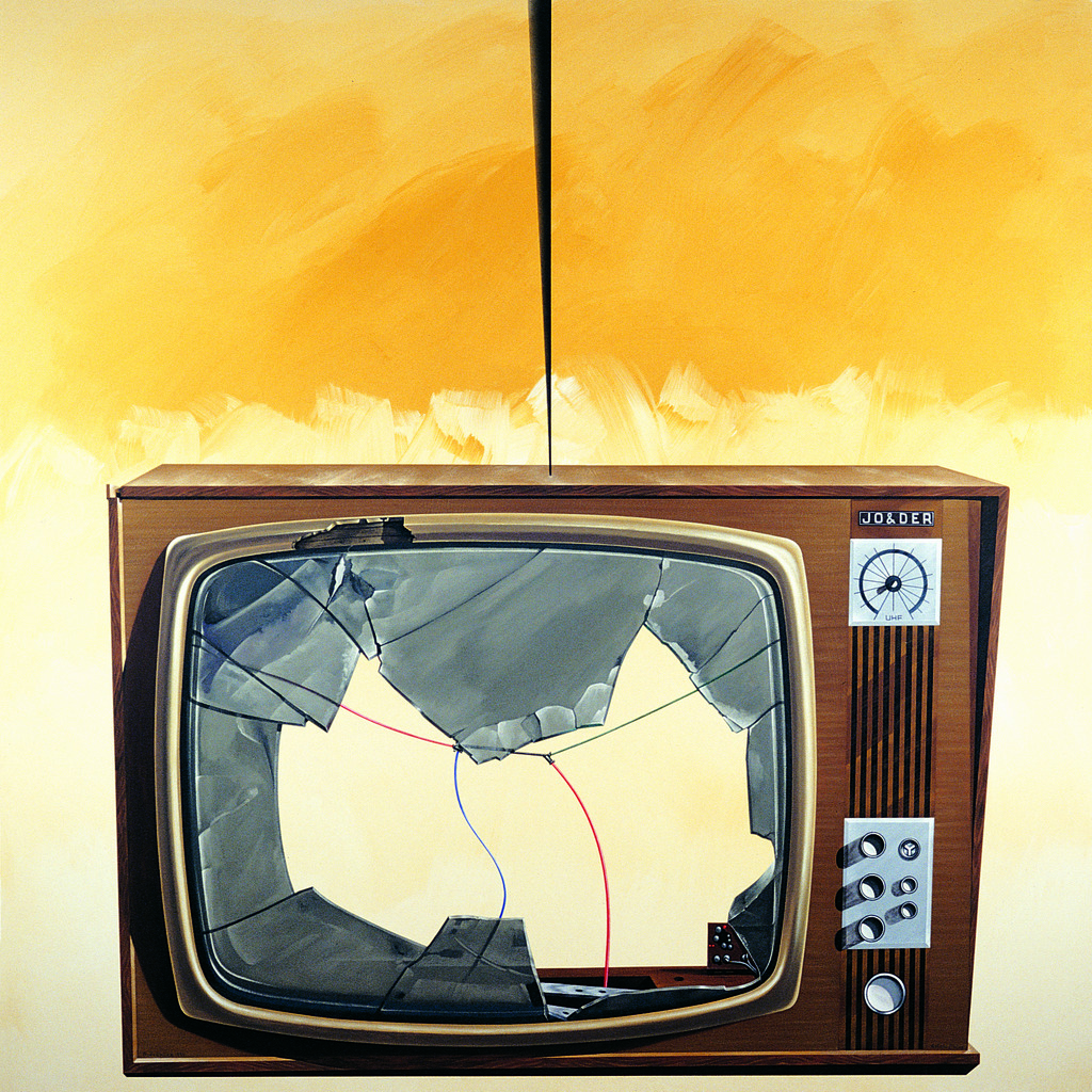 Un Yonder! Un antic Yonder TV representa tots els «joder» del món. Aquesta serà, «joder», i per mà d’Antoni Miró, la nova denominació que assoleix l’aparell insubstancial. Una televisió antiga i de vell i enorme tub, mostra un rastre de botons platejats a la dreta de la imatge frontal. I amb el vidre asclat, tot deixant al descobert els cables que viuen a les seus entranyes. La imatge, però, sembla que resta penjada d’un fil zenital que manté la total estabilitat del conjunt. No obstant això, un corcat a la protecció de la pantalla, i una metàfora de dents que llueixen a la vora trencada dels vidres, aporten realitat i idea. El rerefons que incorpora la taca esgrogueïda, i que acull l’objecte pictòric, satisfà l’aire d’antigor, entre altres coses, que la imatge suggereix. Un «kitsch», al servei del pop que Antoni Miró avalua com a pròxim, per a endinsar-se per la pendent d’aquesta obra.