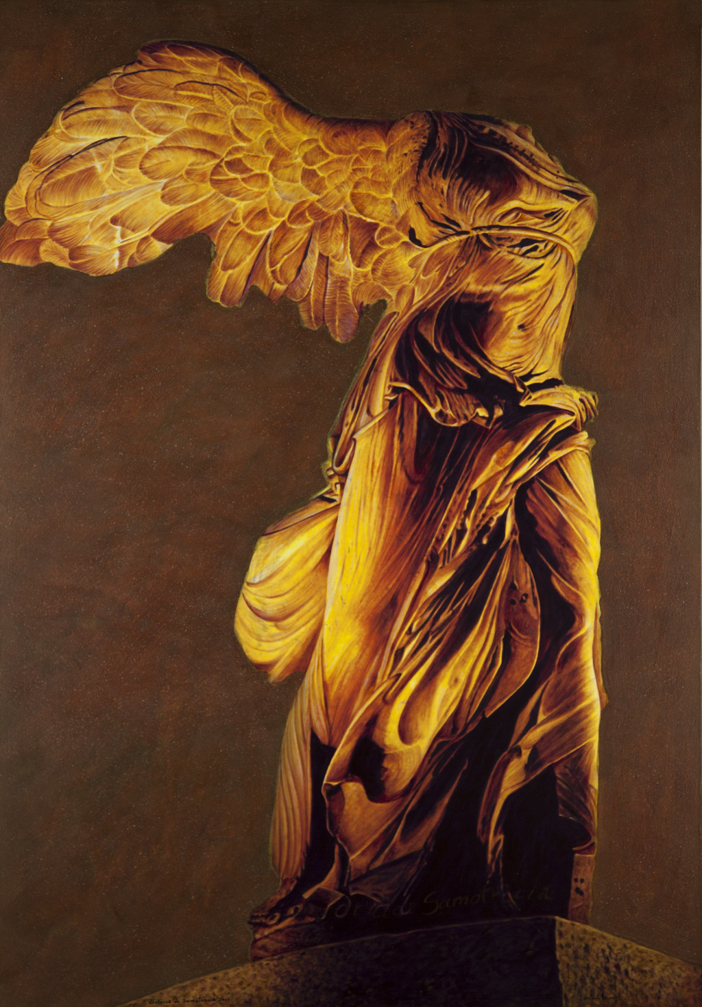 La Victòria de Samotràcia suporta aquesta mar, aquesta forta brisa de l’Egeu, a sobre de la seua corporeïtat, tot esguardant un nord invisible, inabastable, però potser molt pròxim. I l’artista Antoni Miró, nodreix la seua mirada amb la cultura que arrosseguen mar i vent. I amb el particular esguard, amb la complicitat constructiva per a dir, novament, les raons de la bellesa, l’artista fa allò que millor s’hi pot esperar, reinterpretar les formes de l’art, perquè: «...ningú no pot eixir de la seua individualitat», argumenta Arthur Schopenhauer. I així és. L’artista Antoni Miró matisa tot allò que mira amb intensitat, i diposita la gràcia del seu quefer particular per a millor servir a la causa de la transmissió dels fets culturals que l’interessen. Ara, la versemblança d’una escultura, la Victòria de Samotràcia.